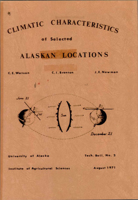 This publication is primarily intended to assist in the process of agricultural resource evaluation of certain areas with known positive attributes. Climatic indices, which are useful in comparing the agricultural potential such as growing degree days, length of growing season, and others, have been tabulated for selected locations for which continuous long term weather records exist. Agencies cooperating to produce this publication are: Institute of Agricultural Sciences, University of Alaska; Agricultural Research Service, United States Department of Agriculture; Environmental Data Service, National Oceanic and Atmospheric Administration.