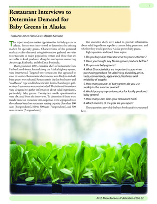 Restaurant Interviews to Determine Demand for Baby Greens in Alaska