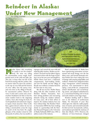 This publication summarizes some possible practices for managing wild berry stands in Alaska. The goal is to stimulate local experimentation with practices that have been useful elsewhere in the circumpolar North.