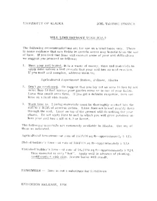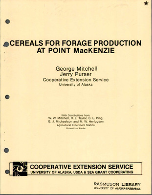 Research history on the soils in the Point MacKenzie project area is limited when compared to many other agricultural areas in Alaska. However, four years of soil fertility and forage production data has been compiled. The basis for information included here is research carried out on the research tract at Point MacKenzie by the staff at the Palmer Research Center. This information coupled with many years of breeding and crop selection data from the nearby Matanuska Valley, make preliminary recommendations possible.