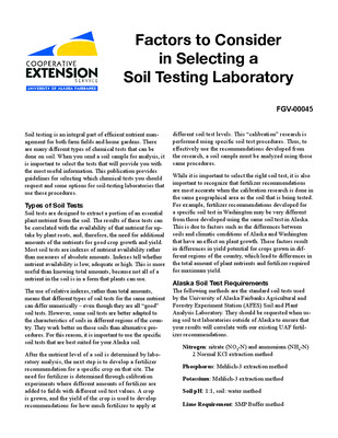This factsheet provides guidelines for selecting which tests one should use and finding soil testing laboratories that perform those tests. It is a fantastic tool for Alaskans as it highlights available options for tests, types of tests and testing facilities. Laboratory contact information is included.