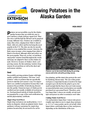 Potatoes are a great crop for Alaska gardens because they are easy to grow and have a high yield per square foot. This publication includes tips on planting, growing, harvesting and storing potatoes as well as suggestions for cooking and preparing them.