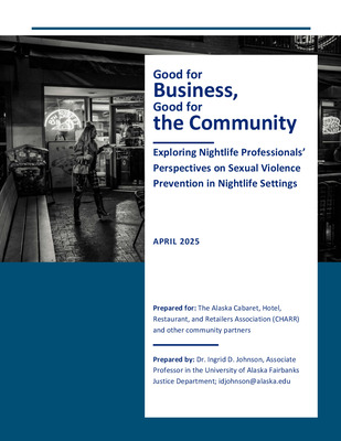 Up to 80% of female nightlife patrons in the US have experienced nightlife-related sexual violence – sexual violence incidents that occur in or are associated with nightlife settings – in their lifetime. Nightlife-related sexual violence (NRSV) is not only bad for victims and society, but also for businesses that rely on return and new customers to feel safe while enjoying these community spaces. This study sought to document nightlife professionals’ ideas for NRSV prevention along with the barriers and catalysts to doing so. The findings in this report come from interviews and focus groups with 24 professionals working in and around nightlife settings in Anchorage, Alaska conducted between February and July of 2024. The purpose is to provide CHARR, Alaska’s nightlife setting owners and management, and other invested community partners such as non-profits, other local businesses, and local policy-makers with a guide to implementing, evaluating, and sustaining NRSV prevention strategies. Fourteen strategies that nightlife owners, management, and staff could take to prevent NRSV were discussed by participants. These specific strategies are grouped under three larger action categories: (1) Cultivate capable guardianship; (2) Keep problem patrons out; and (3) Help patrons keep themselves safe. Dozens of specific catalysts and barriers to implementing NRSV prevention strategies were identified, and these are grouped under nine broader categories. While this study illuminates a range of possible NRSV prevention strategies, it does not allow for understanding how commonly used these different strategies are, what nightlife professionals’ general likelihood of adopting and using these strategies are, and, of course, whether these different strategies, independently or used together, would actually prevent NRSV. A next step toward successful NRSV prevention could be to measure nightlife setting owners’ knowledge about SV and NRSV, as well as their use of and self-stated likelihood of adopting different prevention strategies. These assessments would highlight which strategies to pursue for implementation and evaluation.