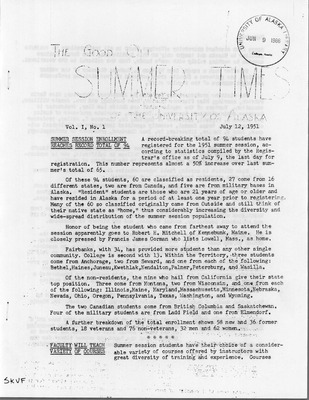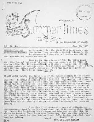 The Good Old Summer Times of the University of Alaska, Vol. 09, No. 1 (June 26, 1959)