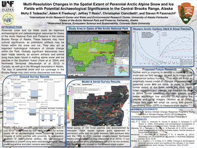 Perennial snow and ice fields could be important archaeological and paleoecological resources for Gates of the Arctic National Park and Preserve in the central Brooks Range of Alaska. These features may have cultural significance, as prehistoric artifacts may be frozen within the snow and ice. They also act as important hydrological indicators of climate change within the Park. Globally significant discoveries have been made recently as ancient artifacts and animal dung have been found in melting alpine snow and ice patches in the Southern Yukon (Hare et al. 2004) and Northwest Territories (Meulendyk et al. 2012) in Canada, as well as in the Wrangell mountains in Alaska. The loss of perennial snow and ice coverage in the Brooks Range may yield similar discoveries over time.
