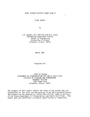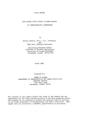Diesel Fuel Additives: Use and Efficacy for Alaska's Diesel Generators