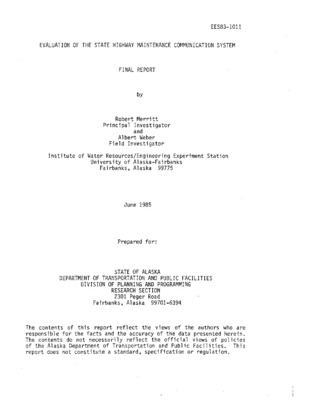 Evaluation of Precut Transverse Cracks for an Asphalt Concrete Pavement in Interior Alaska (Moose Creek –Richardson Highway)