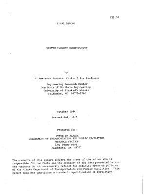 Road-width thermal cracks (major transverse cracks) are perhaps the most noticeable form of crack-related damage on AC pavements throughout colder areas of Alaska. The main objective of this study is to recommend design strategies and construction practices aimed at controlling thermal cracking in AC pavements. In this report, literature review summarizes selected items of the engineering literature directly relevant to precutting of pavement-type structures and control of thermal cracking in general. Crack surveys and data collection were conducted at the test sections in an AKDOT&PF resurfacing project to compare various precut strategies (variations of cut spacing and depth), with the locations of natural major transverse cracks both before and after construction. Laboratory testing and numerical analysis were also presented to provide basic data about the physical properties of the AC and help explain some of the observed characteristics associated with natural thermal cracking. 17.