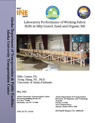 The Tencate H2Ri wicking fabric has proven to work well on two roadway sections on the Dalton Highway. In each the fabric has reduced the water content in the embankment resulting in a maintenance free section. This project used a 24 foot flume in the laboratory to evaluate the effectiveness of the fabric on well graded sand and organic silt. The fabric effectively removed the moisture in the well graded sand. However, the organic silt blinded the wicking fibers which eliminated the capillary moisture movement. The results also demonstrated that overlapping the fabric for joints is not efficient