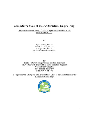 The University of Alaska Fairbanks College of Engineering and Mines has a legacy with the Steel Bridge Competition. Each year, since starting nearly three decades ago, the university has pushed the limits of the competition through vigorous ingenuity and teamwork. Having a small team, where funding is hard to come by and manufacturing is all done in-house, the team would seem to be at a disadvantage. However, the team has used their obstacles as challenges to overcome rather than to deter them. Through various community outreach activities, volunteering, and professional networking the Steel Bridge team gets involved with Fairbanks and raises enough funds for materials and travel to the Pacific Northwest and then onto National Conferences. Through in-house fabrication, the Steel Bridge Team learns hands on welding and design testing, and the value of transparency between design and construction. The team also focuses on building itself, developing the people around them into better, well-rounded, well-spoken and hardworking engineers of Alaska’s future.