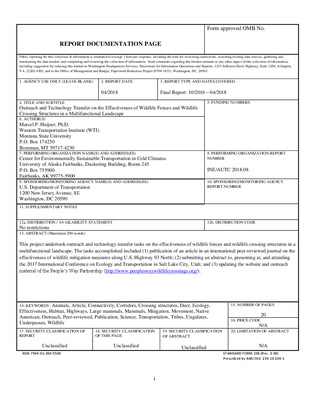 This project undertook outreach and technology transfer tasks on the effectiveness of wildlife fences and wildlife crossing structures in a multifunctional landscape. The tasks accomplished included (1) publication of an article in an international peer-reviewed journal on the effectiveness of wildlife mitigation measures along U.S. Highway 93 North; (2) submitting an abstract to, presenting at, and attending the 2017 International Conference on Ecology and Transportation in Salt Lake City, Utah; and (3) updating the website and outreach material of the People’s Way Partnership (http://www.peopleswaywildlifecrossings.org/).