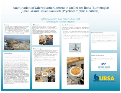 • Examination of Microplastic Content in Steller sea lions (Eumetopias jubatus) and Cassin’s auklets (Ptychoramphus aleuticus) by Tyra Best and Cara Roberts