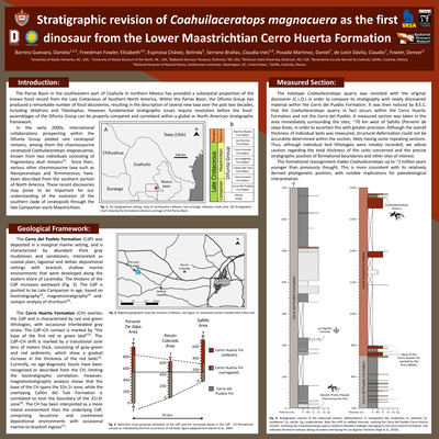 • Stratigraphic revision of Coahuilaceratops magnacuera as the first dinosaur from the Lower Maastrichtian Cerro Huerta Formation by Daniela Barrera Guevara