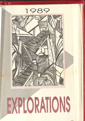 Explorations 1989 is a literary publication of the University of Alaska Southeast and is sponsored by grants from the School of Education and Liberal Arts and the United Students of the University of Alaska Southeast. The work was juried by Art Petersen, Ron Silva of the Department of English and the students who produced this year's publication: Sun Choate, Heidi Little, Robin Sheppard, and Ron Reed.