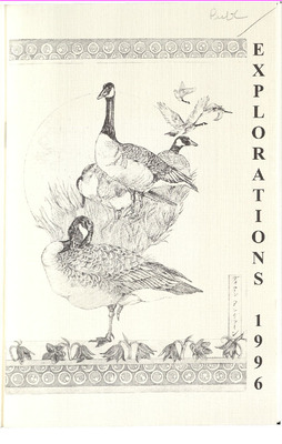 Explorations ‘96 is published with generous support from the University of Alaska Southeast (UAS) School of Education, Liberal Arts, and Science, a volunteer editorial board, and reader fees from poets and writers from across Alaska, the U.S., Canada, and Europe.
